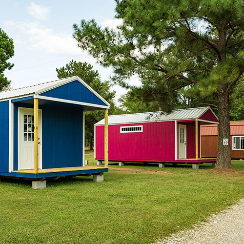 We have a village of colorful tiny homes for rent for the most unique experience when it comes to race weekend.